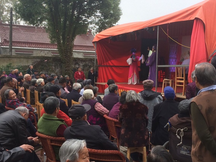 2017年10月26日,竹镇镇老龄委、竹墩社区在竹镇居家养老综合服务中心,为老人们组织了“喜庆十九大 孝亲敬老与重阳同行”扬剧慰问演出,庆祝南京市第三十一个老人节。爱心扬剧团为老人们表演了《金花讥》、《天下父母心》、《王巧楼》,精彩的表演赢得了场下老人们的阵阵掌声。