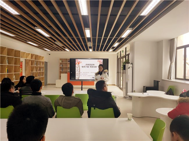 活动现场,小伙伴们踊跃分享了自己阅读过的好书和读书心得。《马云正传》是龙池街道团工委书记董珂分享的书籍,朗诵了其中一段马云连续两次高考失利后的心理活动,激励青年同志勇于面对挫折,敢于为梦想奋斗。街道团工委专职社工毛慧芳分享了《把栏杆拍遍》,描述了辛弃疾如何从一位爱国志士变为爱国词人。四柳社区团支部书记王有福分享了他陪伴孩子阅读国学书籍的心得,呼吁大家多读国学诗词。南京国轩电池有限公司的员工王博分享了自己爱读书又无法坚持阅读的无奈,为自己2020年定下坚持阅读和健身的小目标。