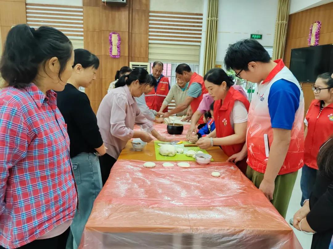 紧接着,充满烟火气的包月饼环节将活动推向一个小高潮。本次制作的并非现代常见月饼,而是旧时生活条件艰苦时常吃的“芝麻圆子”,意在忆苦思甜,珍惜当下幸福生活。在志愿者们的耐心指导下,大家分工合作,和面、擀皮、包入简单的芝麻馅料、再上锅炕熟……一道道工序下来,一个个团圆寓意的“老式月饼”在村民手中诞生。