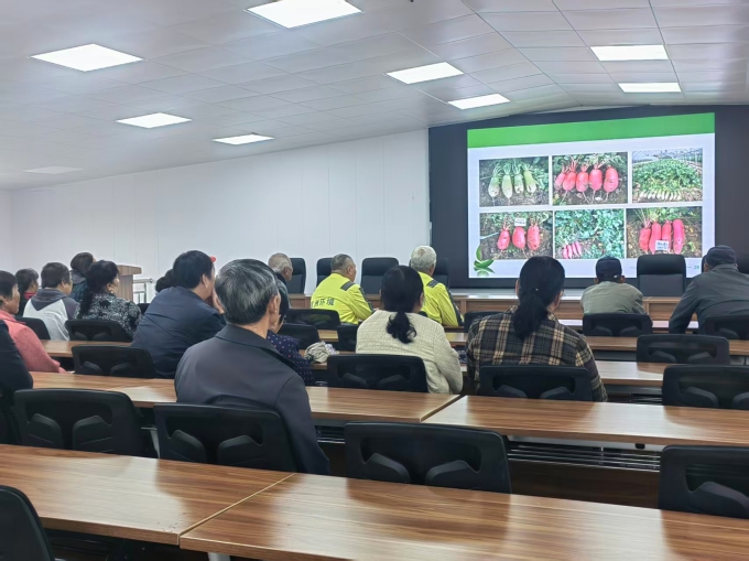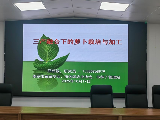 2025年10月17日上午,南京市蔬菜协会、市种子管理站邢后银研究员,来六合区竹镇镇“萝卜工坊”对合作社的学员进行“三产融合下的萝卜栽培与加工”的送教下乡培训。邢研究员从一、萝卜的栽培技术;二、萝卜的加工技术;三、萝卜为基础的三产融合,对合作社的学员进行了培训。