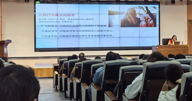 讲座现场,顿园园老师从“问题行为是求助信号”切入,剖析孩子“沉默寡言”“拖延学习”“沉迷手机”等行为背后未被满足的心理需求,让家长们明白:这些看似叛逆的表现,实则是孩子在传递“需要帮助”的信号。随后,她聚焦“如何与初中生沟通”,从“尊重、倾听、理解、引导教育”四个维度,给出具体可操作的方法——