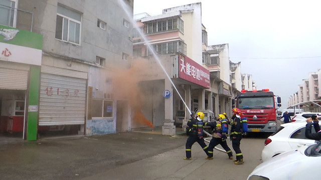 “全体注意!四楼发生‘火灾’,立即疏散!”指挥长一声令下,演练开启。四楼窗口传出“着火啦”呼喊,现场进入“火灾”状态。有居民迅速拨打119报警。